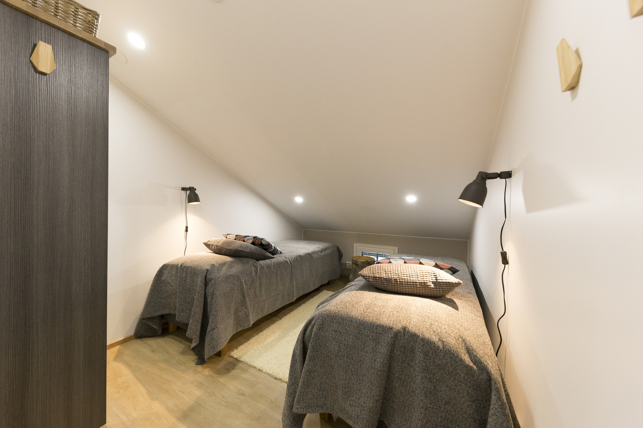 Laatuluokka: Q5 Henkilömäärä: 10 Alue: Levikeskus, päärinteen läheisyydessä Osoite: Tähtitie 2, 99130 Sirkka Etäisyydet: Kauppa: 0,05 km, Lähin rinne: 0,3 km, Latu: 0,2 km, Kelkkareitti: 0,2 km, Golfkenttä: 4,0km, Suksibussinreitti: 0.1 km Tyyppi: Alppityylinen talo Rakennusvuosi: 2018 Pinta-ala: 105 m², Makuuhuoneet/muut nukkumapaikat: 4 mh Vuodepaikat: 2 parisänkyä 160cm (tarvittaessa voidaan laittaa erilleen) ja 4 erillistä (voidaan yhdistää tarvittaessa) sänkyä alakerrassa, yksi parisänky 160 cm parvella. Wc:t: 2 (toinen pesuhuoneessa) Sauna: 6 hengen sähkösauna, Harvia kiuas upotettu lauteisiin, 2 sadesuihkua pesutilassa